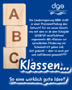 Im Interesse der betroffenen Kinder und Erziehungsberechtigten sieht die dgs-Westfalen-Lippe hier viele Diskussionspunkte, ungeklärte Fragen und Handlungsbedarf. Deshalb ist für unser diesjähriges Herbstgespräch auch eine durchgängig gemeinsame Tagung vorgesehen.